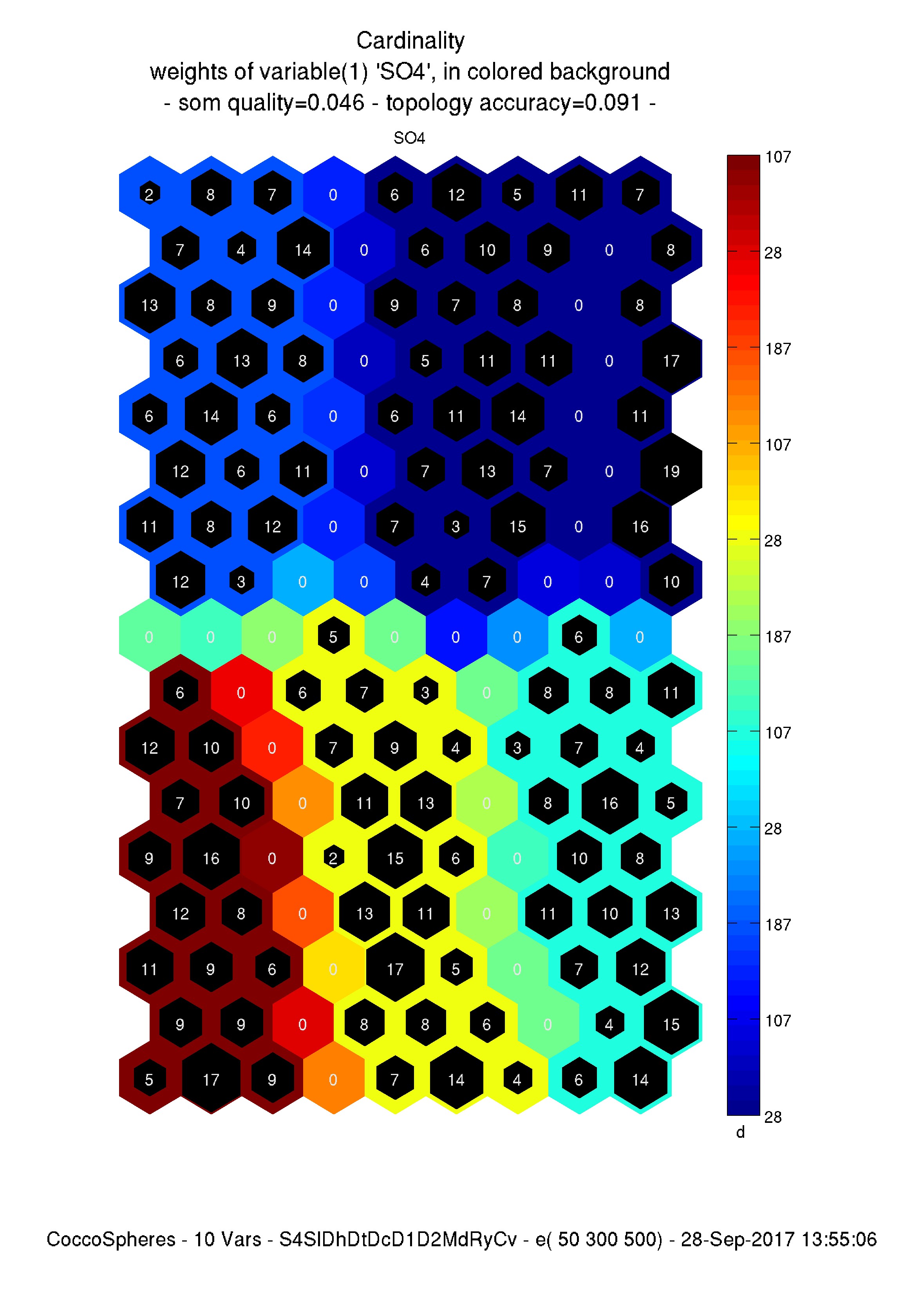 Entrainement des SOM avec la deuxième série de données, que j'appelle ici 'tables B'. Cette nouvelle série comporte en plus les variables Salinite', 'Delta_pH', 'Delta_AT' et 'Delta_DIC'.