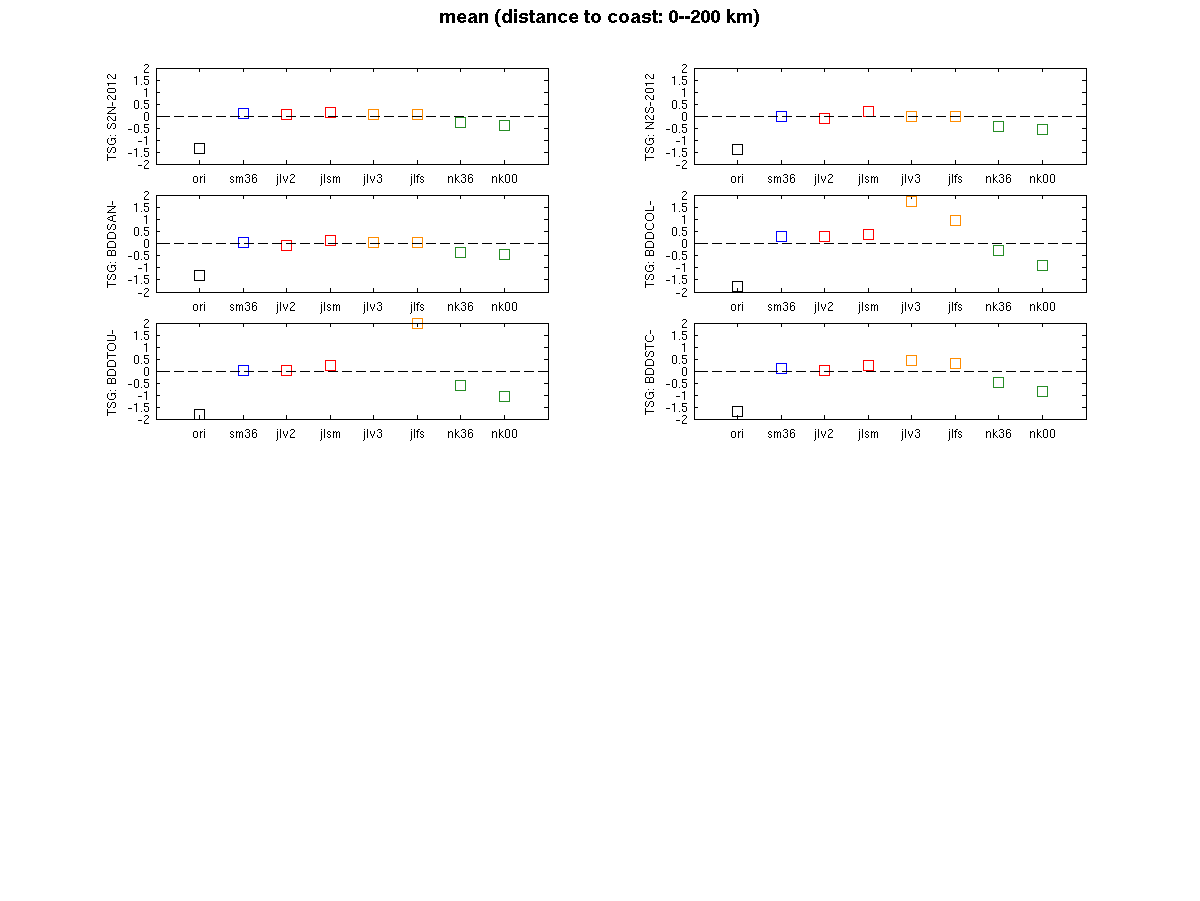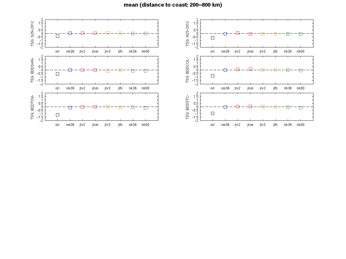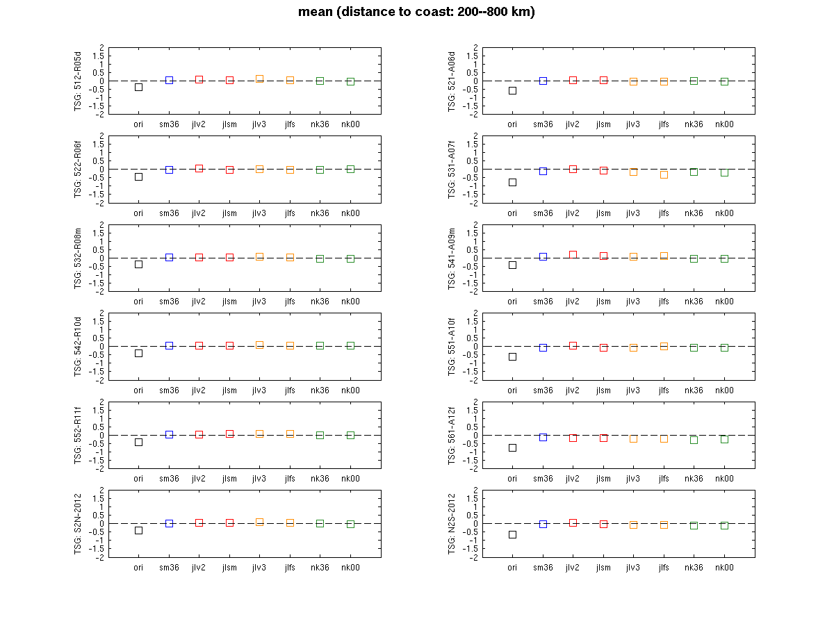 mensuelles pour SMOS, TSG et ISAS avec des bandes de Xswath de 25 km,