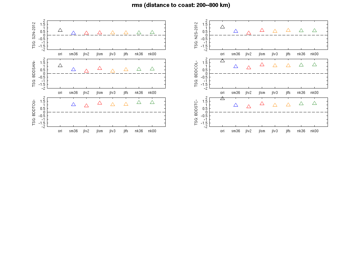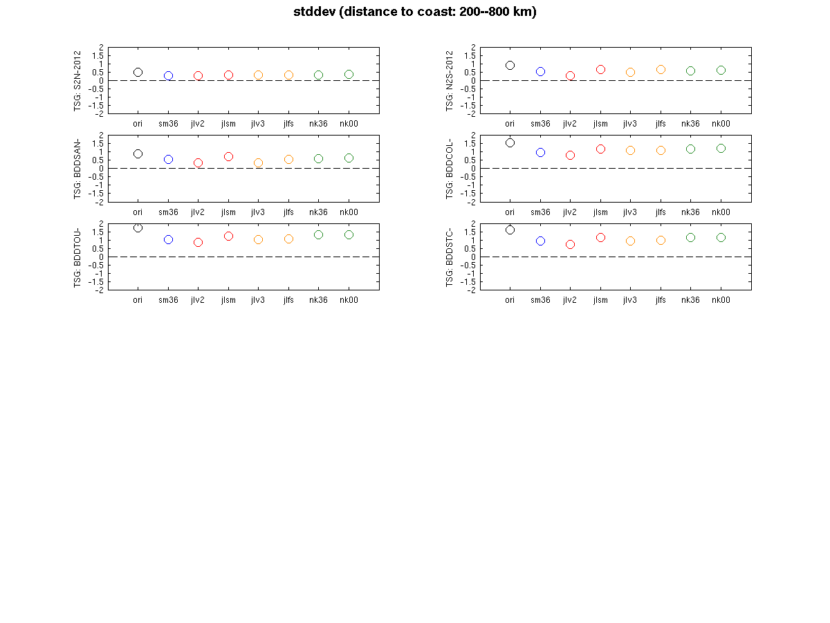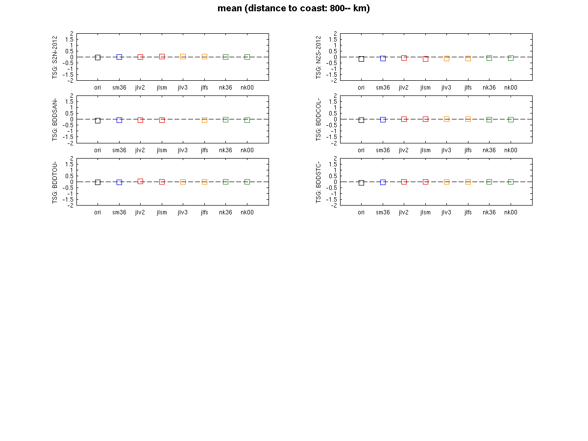mensuelles pour SMOS, TSG et ISAS avec des bandes de Xswath de 25 km,