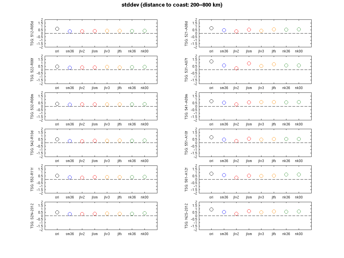 avec les Time series CATDS-ISAS pour différents niveaux en fonction de la distance à la côte.)